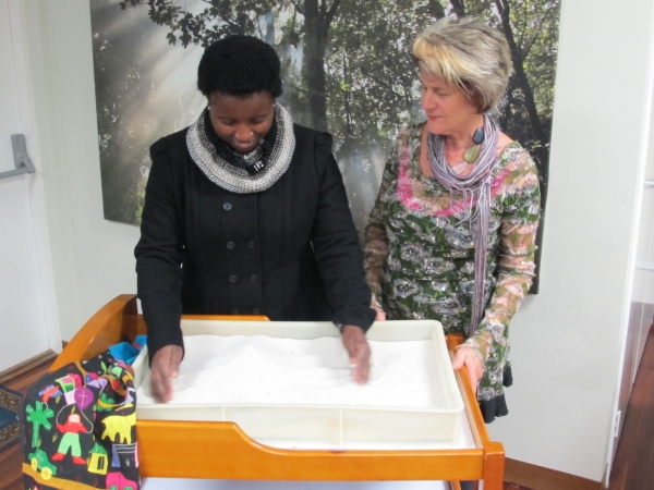 Ruby and Bessie demonstrate Sandtray Therapy
